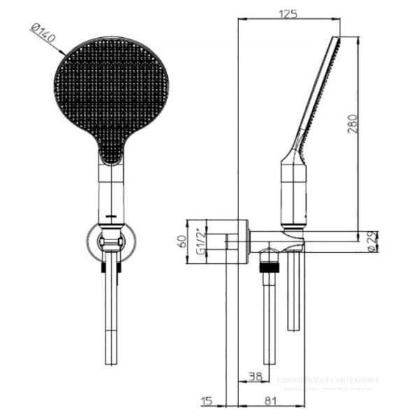 Размер ручного душа, см:14