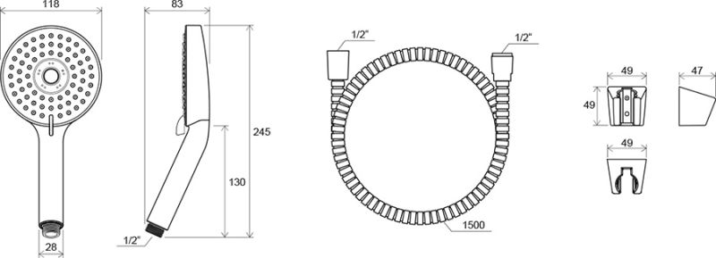 - душевой шланг: 150 см из прочного пластика
