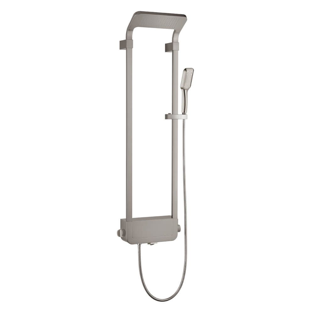 верхний душ, ручной душ и поворотный излив. левый переключатель