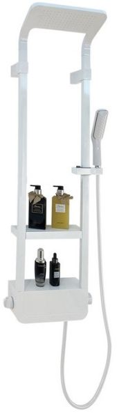 • Комплектация: душевая панель с верхним душем, душевая лейка, смеситель, шланг для душа, полочка, крепеж, инструкция