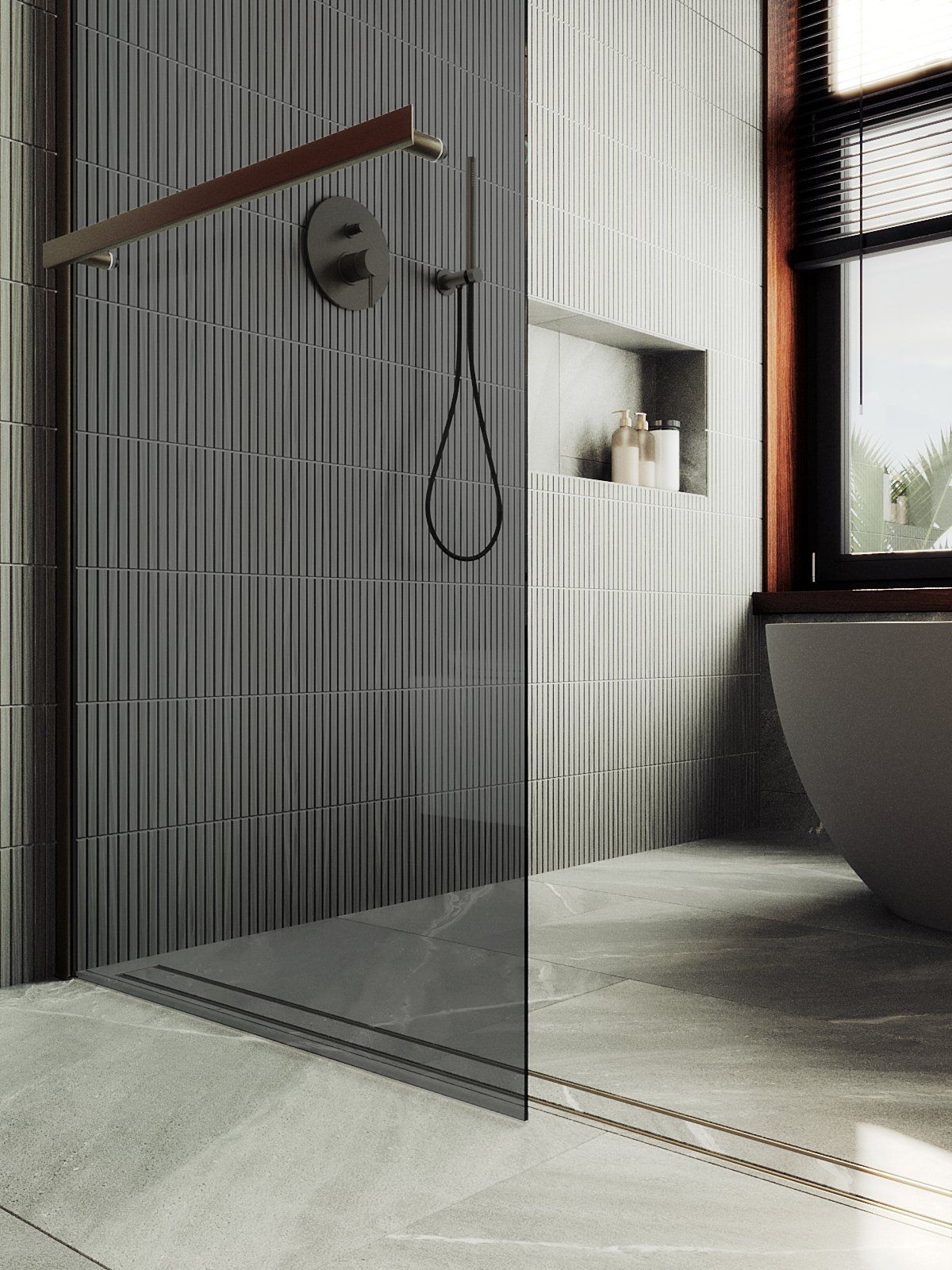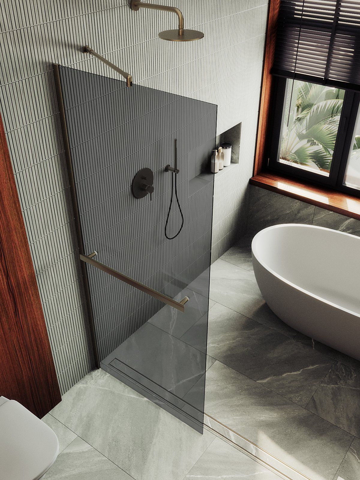 Душевая перегородка в профиле с полотенцесушителем представляет собой компактное и функциональное решение для разделения пространства в ванной комнате . Она изготовлена из закаленного стекла,анодированного алюминиевого профиля, что обеспечивает прочность и долговечность конструкции. Закаленное стекло , цвет графит , толщина 8 мм , 1950*790-1 шт.
