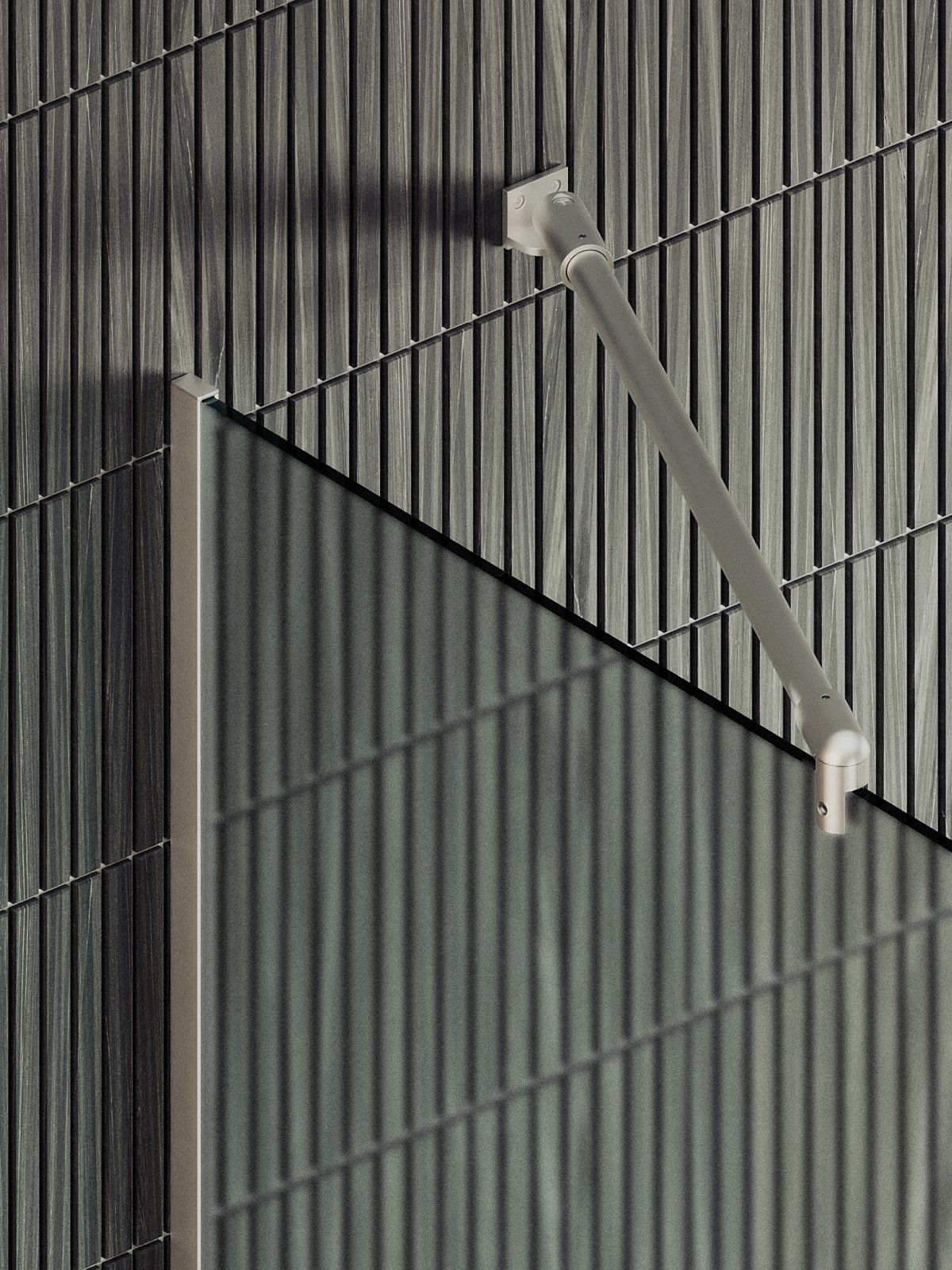 Душевая перегородка в профиле с полотенцесушителем представляет собой компактное и функциональное решение для разделения пространства в ванной комнате . Она изготовлена из закаленного стекла,анодированного алюминиевого профиля, что обеспечивает прочность и долговечность конструкции. Закаленное стекло , цвет сатин, толщина 8 мм , 1950*790-1 шт.