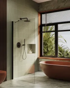 Душевая перегородка в профиле by Deonria P-195-109-8-T-B 109см чёрный/прозрачный купить
