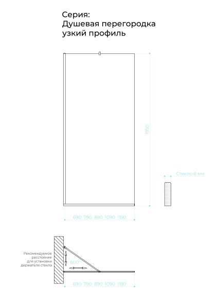 Душевая перегородка в профиле by Deonria P-195-89-8-T-HM 89см хром матовый/прозрачный