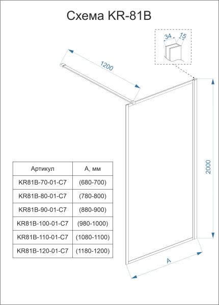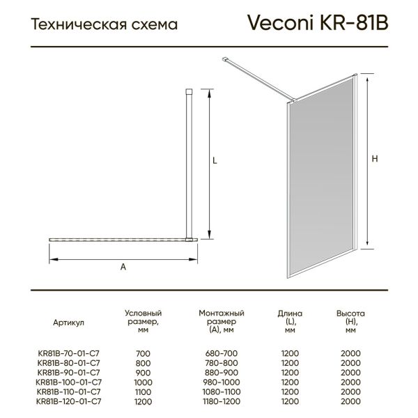 Душевая перегородка Veconi Korato KR-81, 700x2000, хром, стекло прозрачное купить