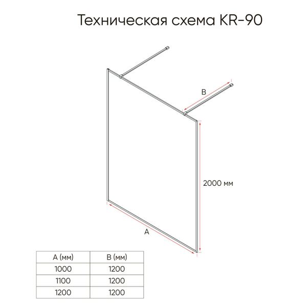 Душевая перегородка Veconi Korato KR-90BB, 1000x2000, черный матовый, черное купить