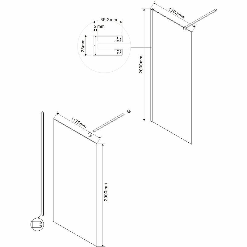 Конструкция: неподвижное стекло с профилем и держателем.