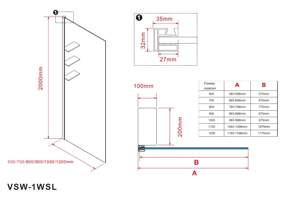 Душевая перегородка Vincea Walk-In VSW-1HWS100CGGM, 1000*2000, вороненая сталь, стекло тонированное