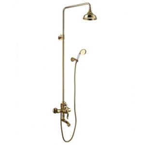 Артикул LM4762GСмеситель для ванны и душа с регулируемой высотой штанги, поворотным изливом и верхней душевой лейкой "Тропический дождь"