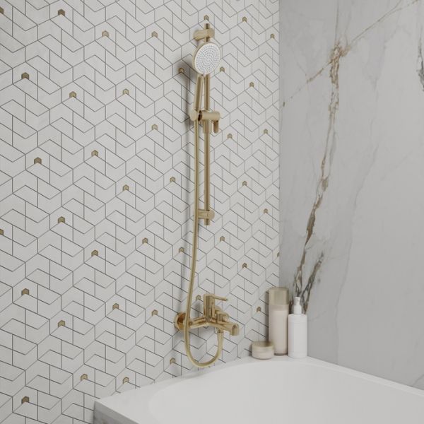 Душевая стойка Ray в красивом оттенке матового золота функциональна, практична и будет гармонично сочетаться с дизайнерскими решениями в классическом и неоклассическом стиле. Может быть установлена и над ванной, и в зоне душевого ограждения. Держатель-слайдер легко перемещается вверх-вниз по стойке, позволяя отрегулировать положение лейки и высоту подачи воды – индивидуально для каждого члена семьи.
