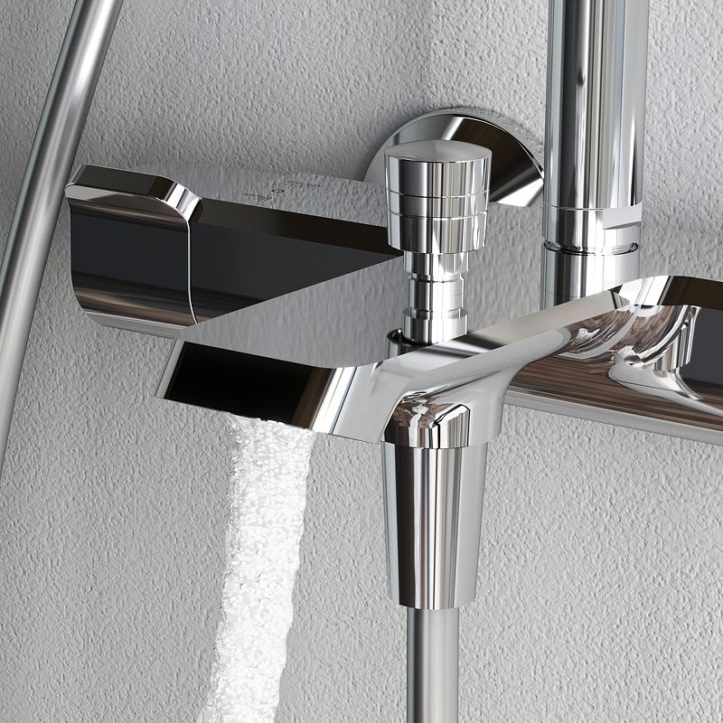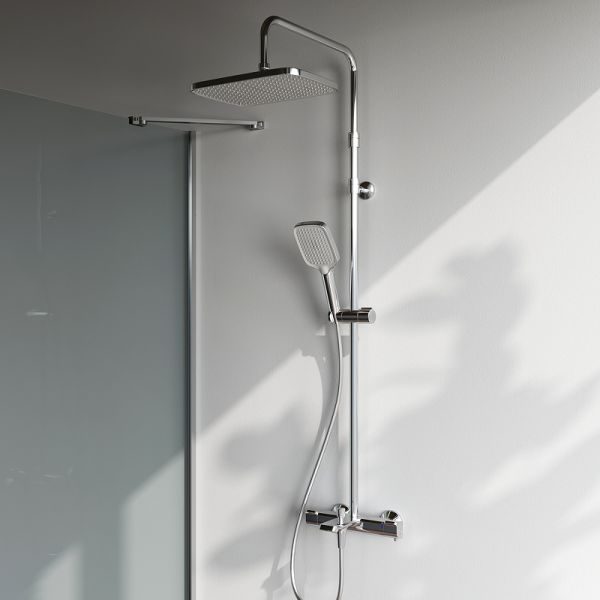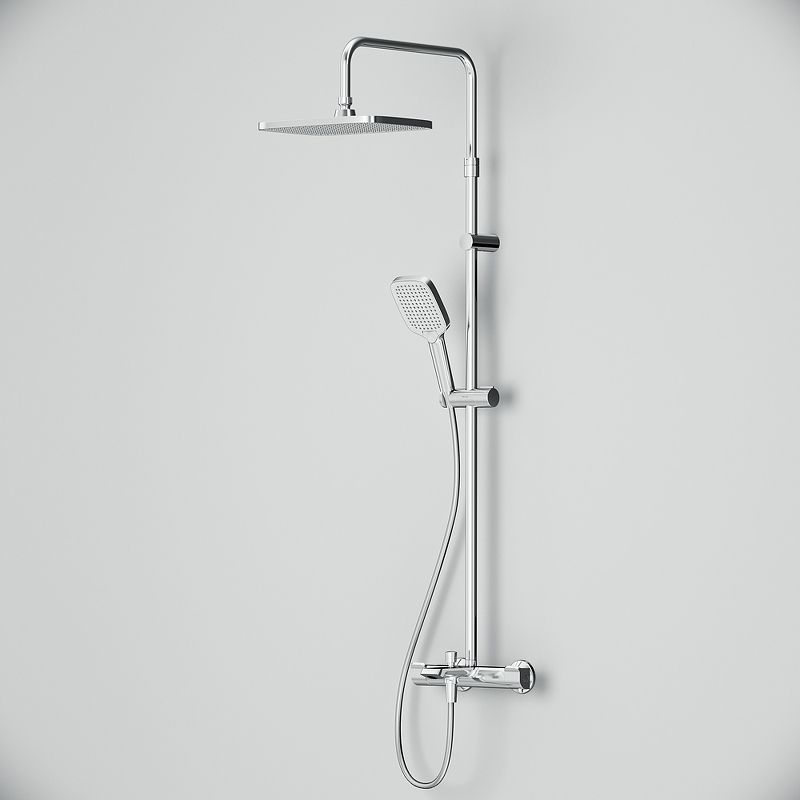 Комплект включает тропический верхний душ размером 300×210 мм с фиксированным выносом 380 мм для равномерного распределения воды, а также ручной душ с тремя режимами работы: Spray для мягкого потока, EnerJet для интенсивного напора и комбинированный режим Spray + Massage для массажного эффекта. Телескопическая штанга регулируется по высоте от 1030 до 1460 мм, что позволяет адаптировать систему под рост любого пользователя. Длина душевого шланга составляет 1750 мм, обеспечивая свободу движений.