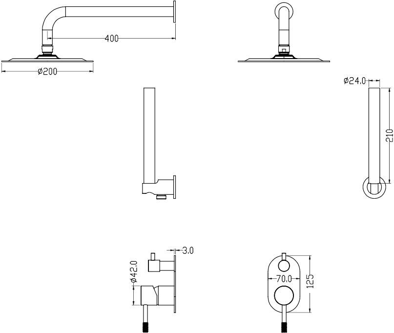 Размер верхнего душа, см:20