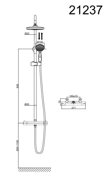 • Размер верхнего душа, см: