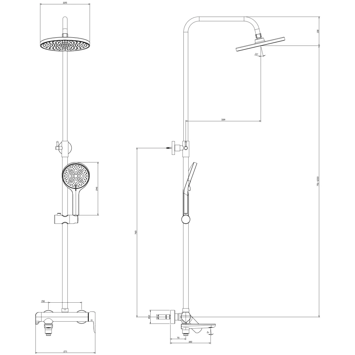 душевая система со смесителем