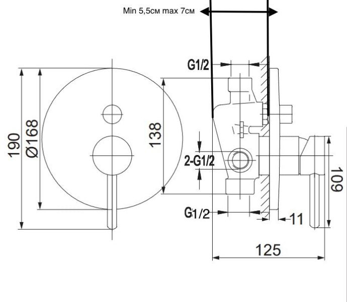 Размер ручного душа, см:12