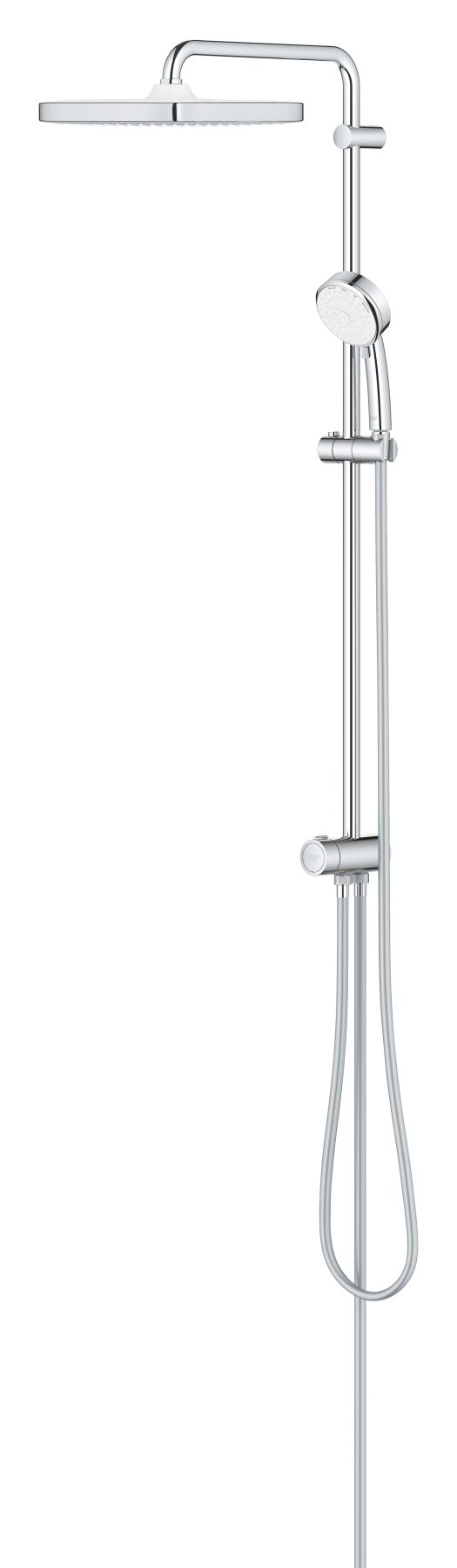 Душевая система Grohe Tempesta Cosmopolitan 26694000 хромВключает в себя:горизонтальный душевой кронштейн 390 мм, регулируется перед установкойпереключатель на 3 положения: верхний душ, ручной душ, верхний душ с Eco-режимомверхний душ Tempesta Cube 250х250 мм2 режима струи (с помощью переключателя):Rain и SmartRain, включая GROHE DripStopтыльная часть головки верхнего душа белаяс шаровым шарниромугол поворота ± 10°ручной душ Tempesta Cosmopolitan 100 (27 573)4 вида струй:GROHE Rain O2, Rain, Massage, Jetрегулируется по высоте с помощью скользящего элементарасстояние между переключателем и верхним креплением: 920 ммRelexaflex душевой шланг 1500 мм 1/2" x 1/2"Relexaflex душевой шланг 500 мм 1/2" x 1/2"гибкая установка: подключение к смесителю / подключению для душевого шланга с резьбой 1/2" душевым шлангом 500 ммGROHE DreamSpray превосходный поток водыGROHE StarLight хромированная поверхностьGROHE DripStop практически полное отсутствие капель после выключения воды (верхний душ)SpeedClean система против известковых отложенийвнутренний охлаждающий канал для продолжительного срока службыTwistStop против перекручивания шлангасовместим с проточным водонагревателем только выше 18 кВ/ч, а также с накопительным водонагревателем (см. Техническую информацию)минимальный расход воды 7л/мин