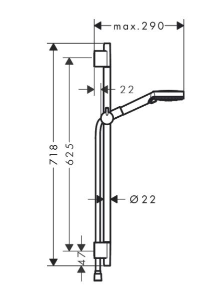 состоит из: ручной душ, душевая штанга, шланг для душа, ползунок