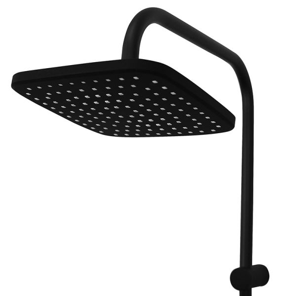Душевая система Orange M04-944b: однозахватный смеситель для ванны с изливом, верхний душ 230х230 мм с регулировкой угла наклона, ручной душ 120 мм - 1 режим струи, регулируемый по высоте и наклону держатель ручного душа, форсунки верхнего и ручного душа с функцией легкой очистки от известкового налета, душевой шланг 1,5 м с защитой от перекручивания, штанга с возможностью установки в старые отверстия, керамический дивертор. Цвет матовый черный.