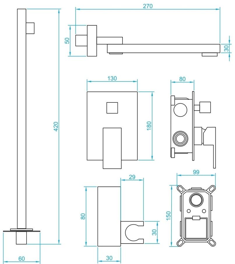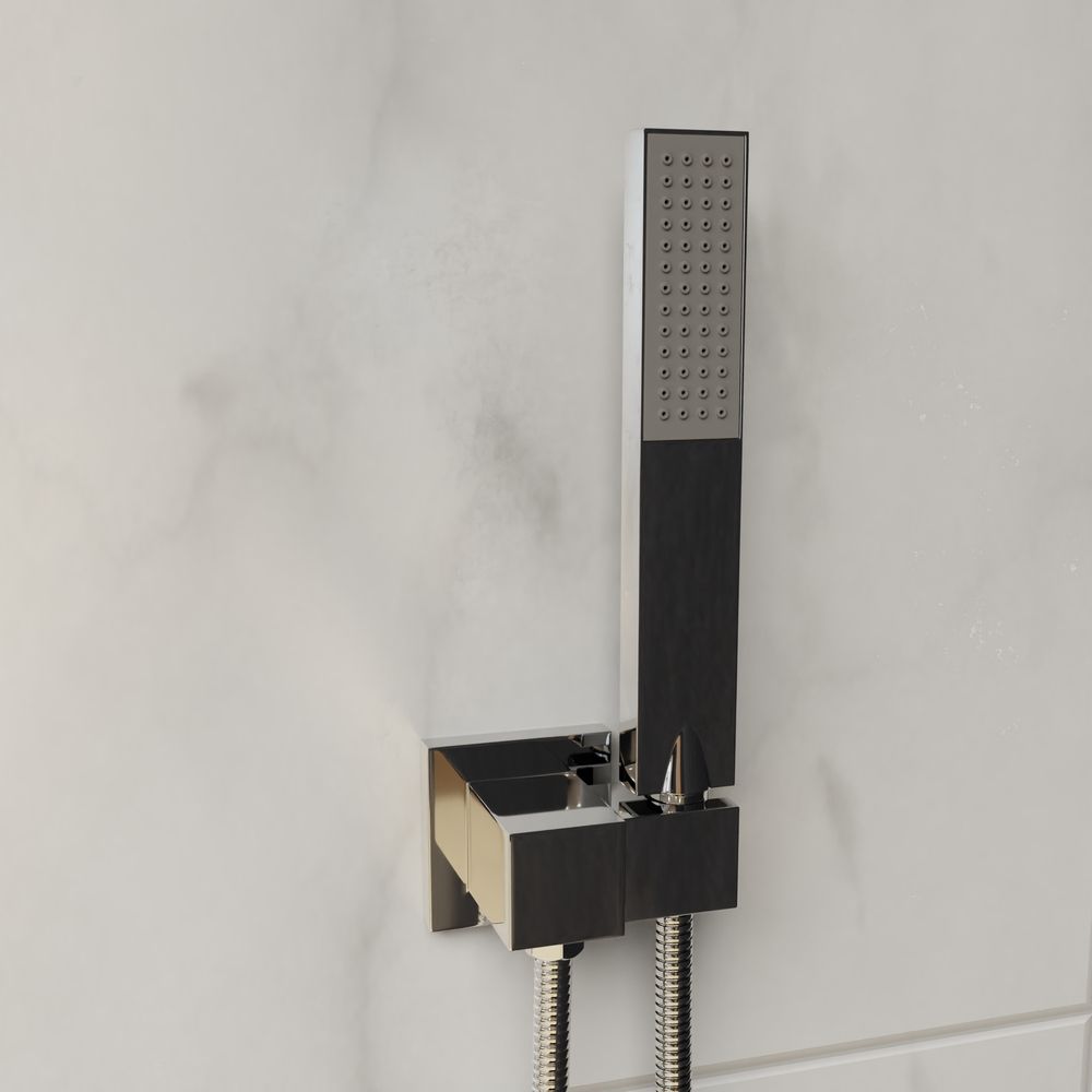 - Головной душ, горизонтальный держатель из нержавеющей стали. Головной душ оснащён шарнирным креплением, что позволяет выбрать необходимый угол направления воды
