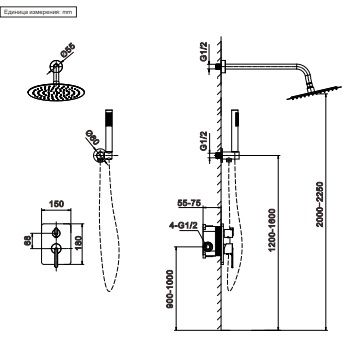 Душевая система с термостатом AltroBagno Unione 040408 NeOp черный матовый