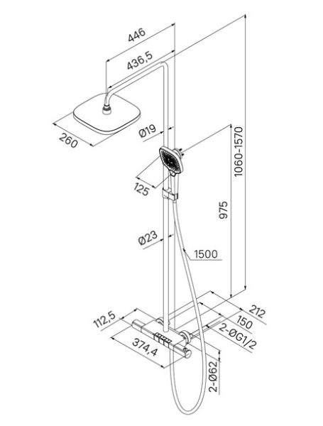 Душевая система с тропическим душем IDDIS SpaHome SPHBLTKi06 с термостатом чёрный матовый