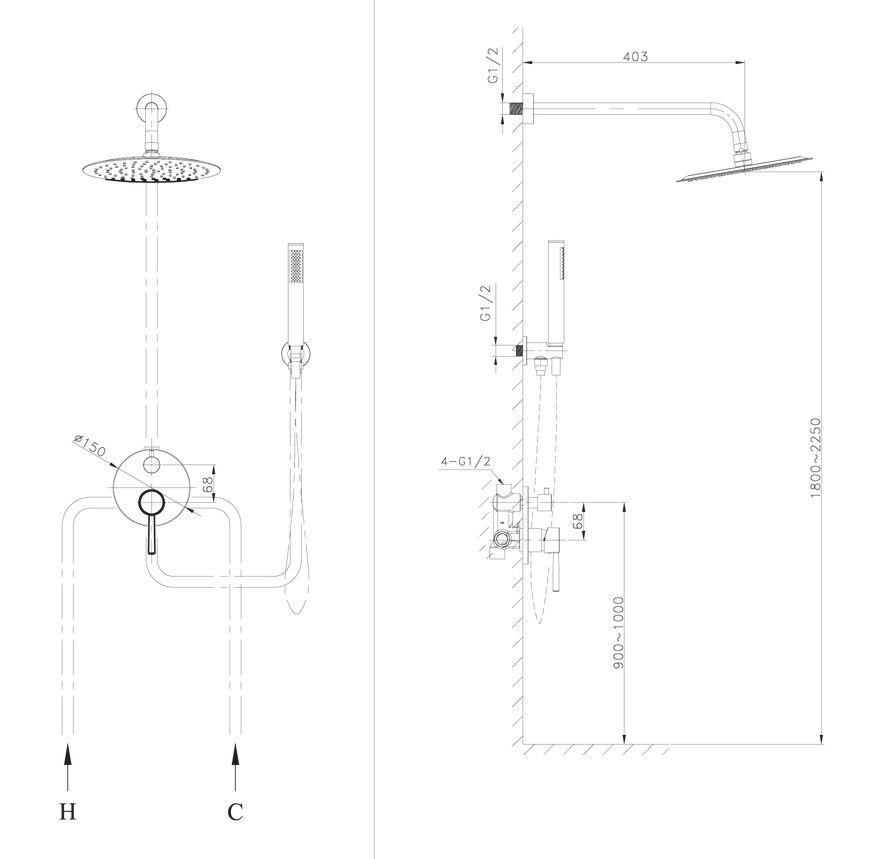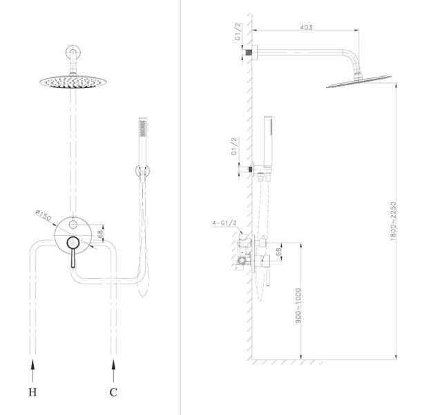 Встроенный тропический душ Raiber premium RPB-005 коллекция Graceful, матовый черный Подробнее