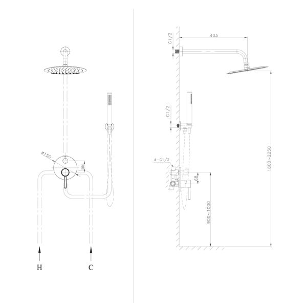 • Размер верхнего душа, см: