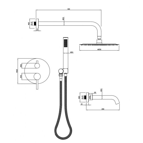 • Размер верхнего душа, см: