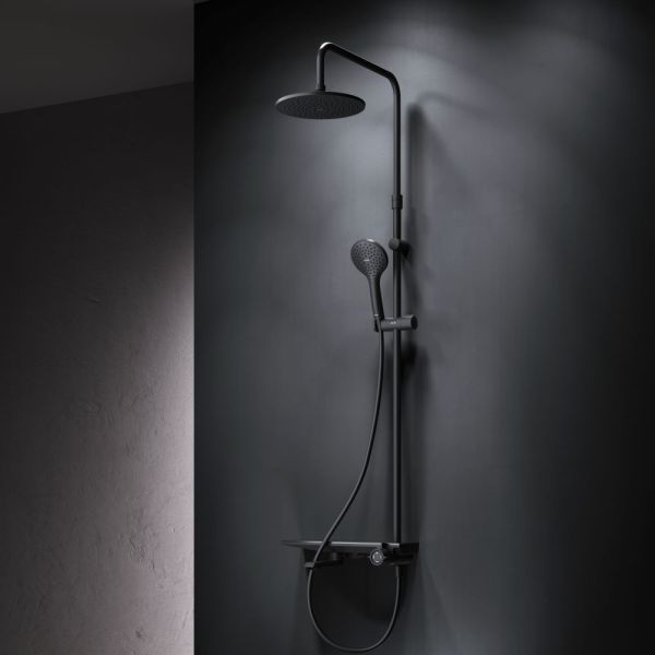 Душевая стойка Am.Pm Gem F0790722 с ванно-душевым смесителем-полкой чёрный