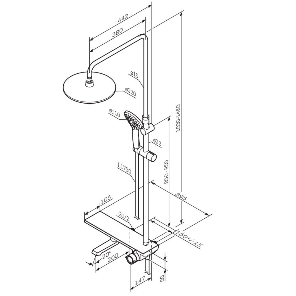 Продуманные детали для удобства использования: телескопическая поворотная штанга регулируется по высоте в диапазоне от 1030 до 1460 мм, обеспечивая комфорт для людей любого роста. Диаметр душевых леек (верхний душ 220 мм и ручной душ 110 мм) позволит ощутить преимущества тропического душа даже в стандартной ванной, тогда как увеличенная длина шланга 1750 мм обеспечит свободу движений во время принятия душа.