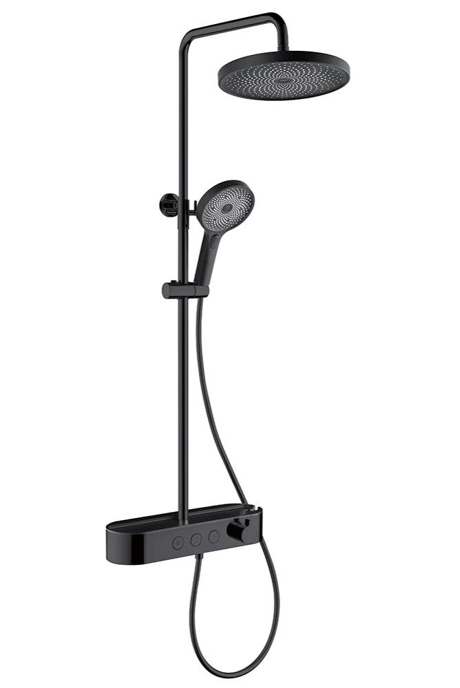 состоит из: верхний душ, ручной душ, смеситель для ванны, штанга для душа, держатель для душа; верхний душ 260 1jet; размер душевого диска: 260 мм, тип струи: Rain; душевая лейка 126 мм, 3 режима струи; каскадный излив; шарнирное соединение: регулируемый угол верхнего душа;длина держателя для душа: 400 мм;держатель для ручного душа регулируемый по высоте; поворотный держатель для душа; вид монтажа: внешний монтаж; соединительная резьба G ½; межосевое подключение 150 мм ± 12 мм; телескопическая штанга; подъемная труба может быть укорочена по высоте 100-450 мм; шланг 1500 мм; 2 года гарантии.