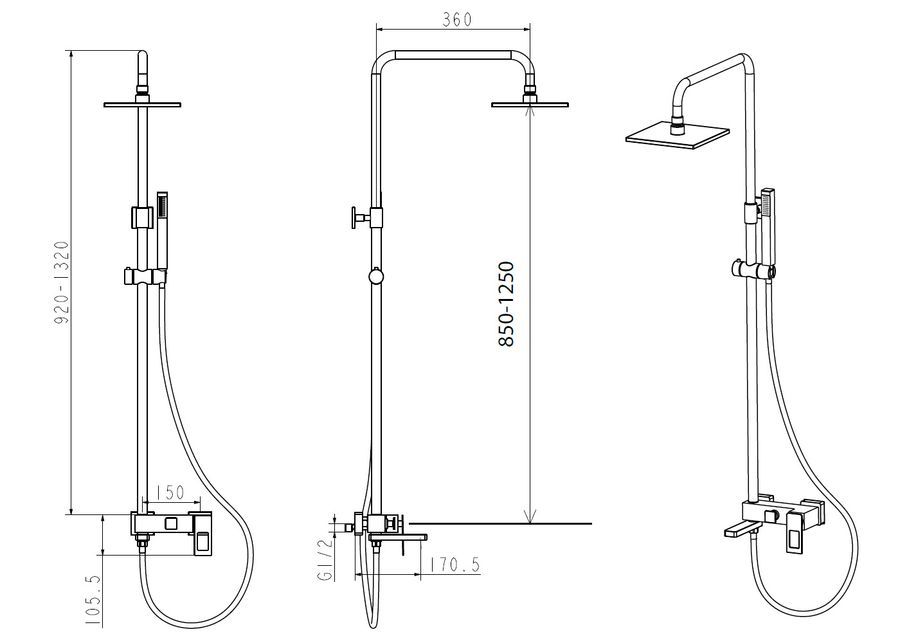 Душевая система Boheme Q, верхний душ, ручной душ, с изливом.
