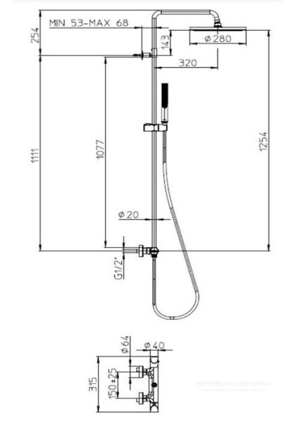 Bossini Apice душевая система: термостат, стойка с верхним поворотным душем 28 см, с ручным душем, цвет хром.