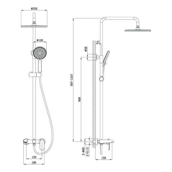 Душевая стойка FERRI, графит брашинг