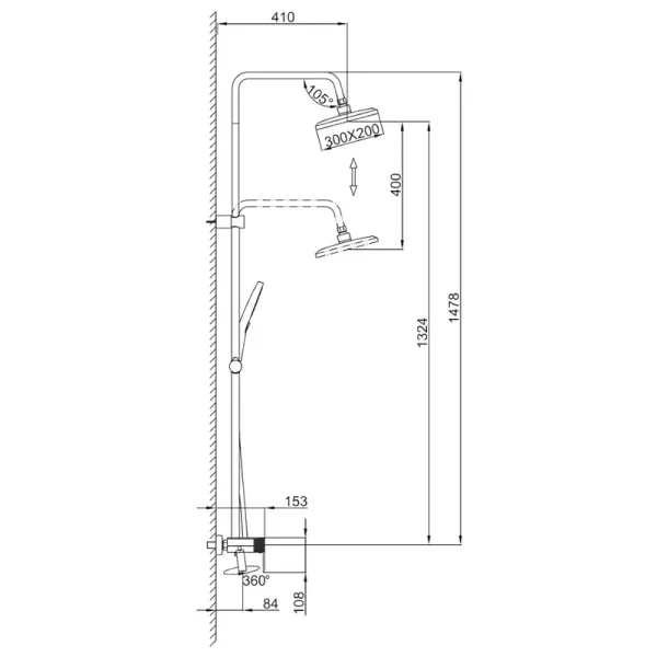 Вылет верхнего душа: 41 см