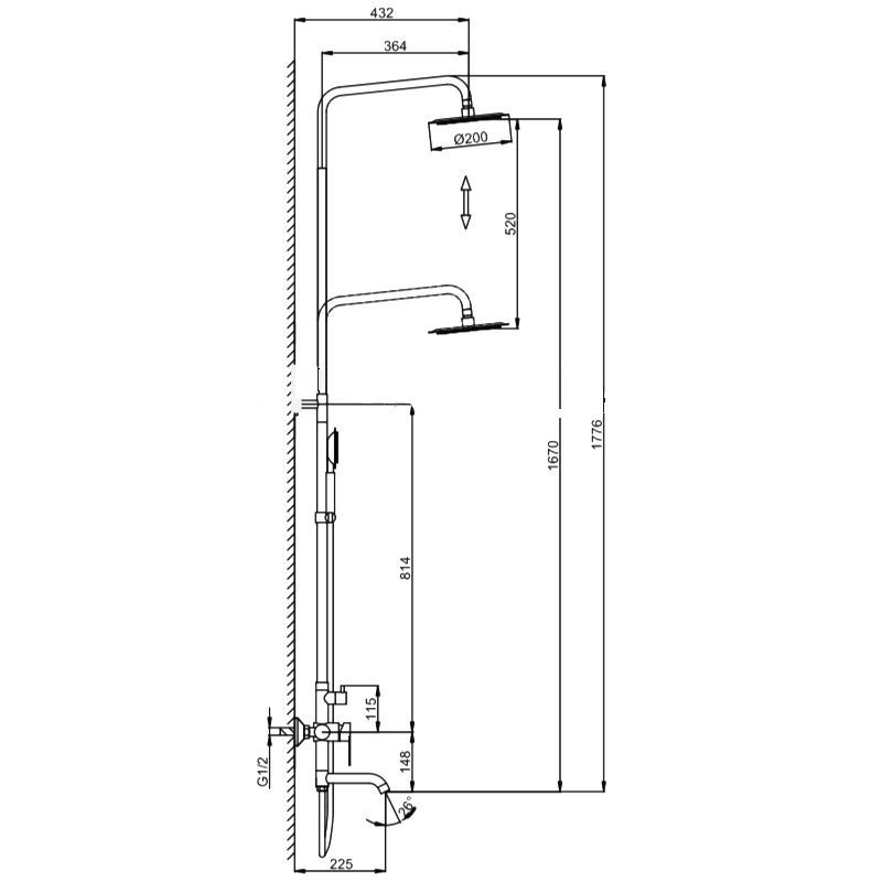 Вылет верхнего душа, см