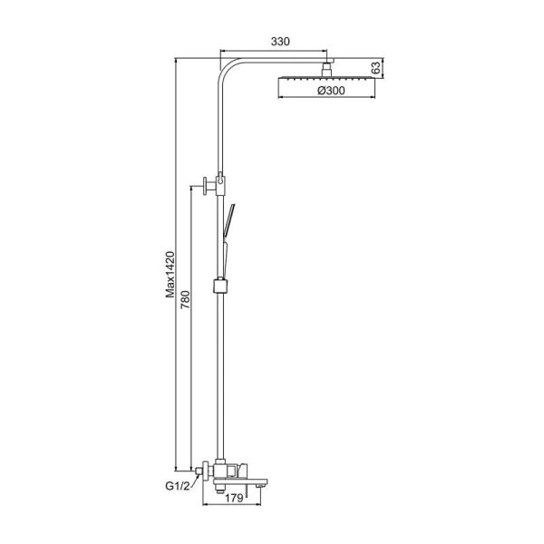 • Размер верхнего душа, см: