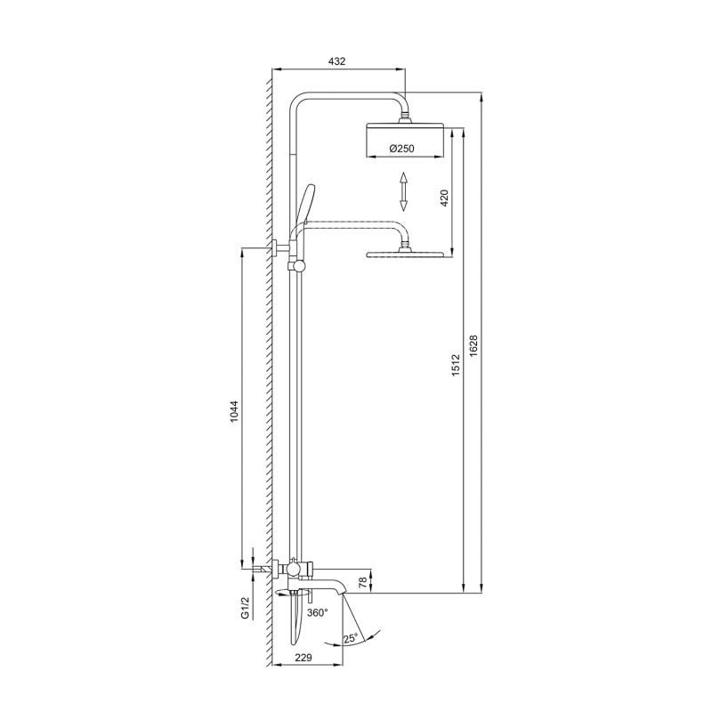 • Размер верхнего душа, см: