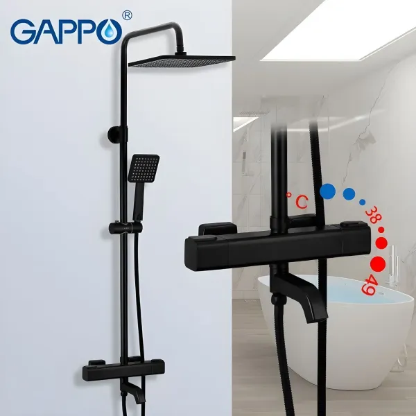Душевая стойка Gappo G2491-6 с термостатом чёрный купить