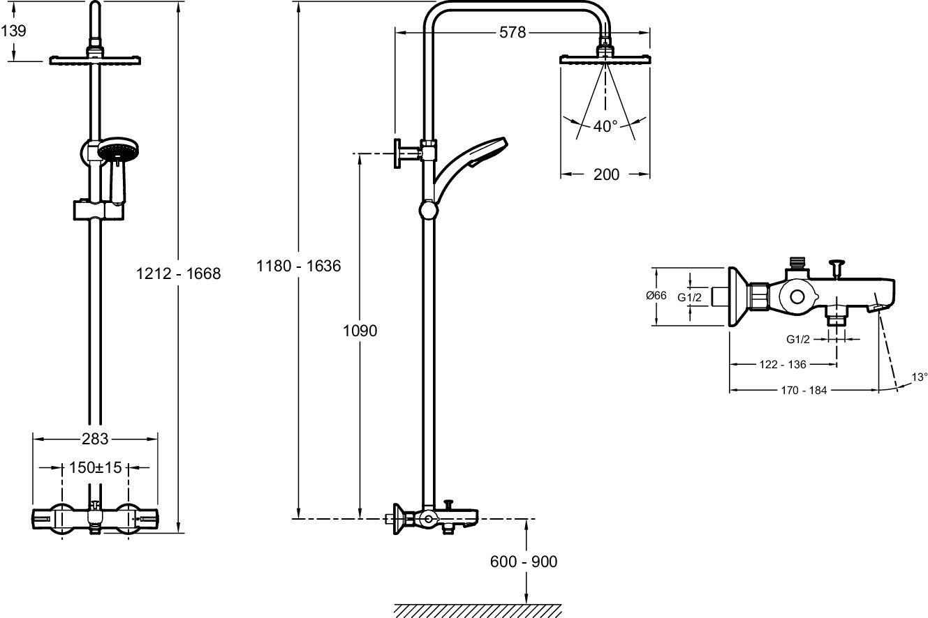 Душевая колонна с термостатическим смесителем и верхним душем.
