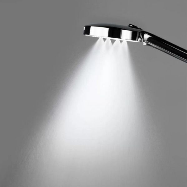 Душевая колонна FONTE c термостатическим смесителем рассчитана на три потока (фиксированный излив, верхний душ, ручная лейка). Благодаря возможности регулировки по высоте монтажа, может быть установлена как в душевой зоне, так и в ванне.