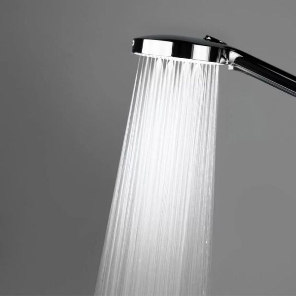 Верхний душ и ручная лейка имеют форму круга. Стойка выполнена из нержавеющей стали, круглая в сечении. У ручной лейки предусмотрены четыре режима потока. Регулировка высоты при установке – 1114-1874 мм.