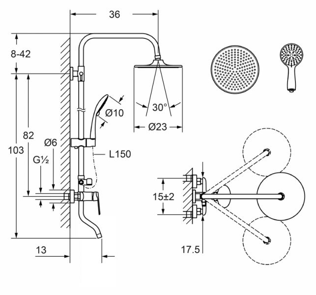 Размер верхнего душа, см:23