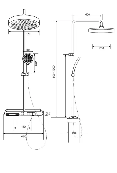 * верх.диск Ø320 мм, моб.лейка 3 режима;