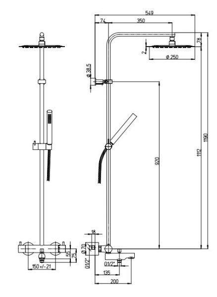 Размер верхнего душа, см:25