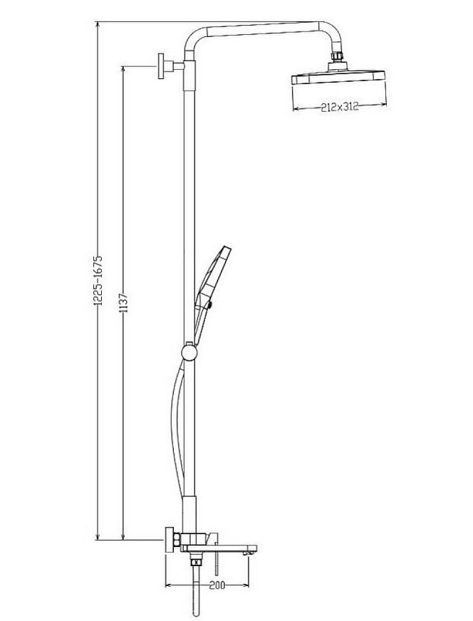 Душевая система Raglo R50.24.Материал: латунь.Управление: однорычажное.Механизм: керамический картридж.Излив: поворотный. Аэратор.Регулируемая по высоте душевая штанга: 1225-1675 мм.Форма верхнего душа: прямоугольная.Размер верхнего душа 312х212 мм.Регулируемый по высоте держатель ручного душа.Количество режимов струи ручного душа: 3.Отверстия для монтажа: 3.Стандарт подводки: G 1/2.Монтаж: на стену.