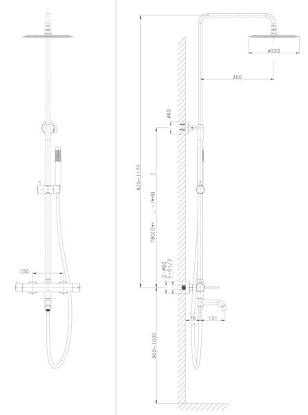 душевой шланг ПВХ 150см, душевая труба из латуни,