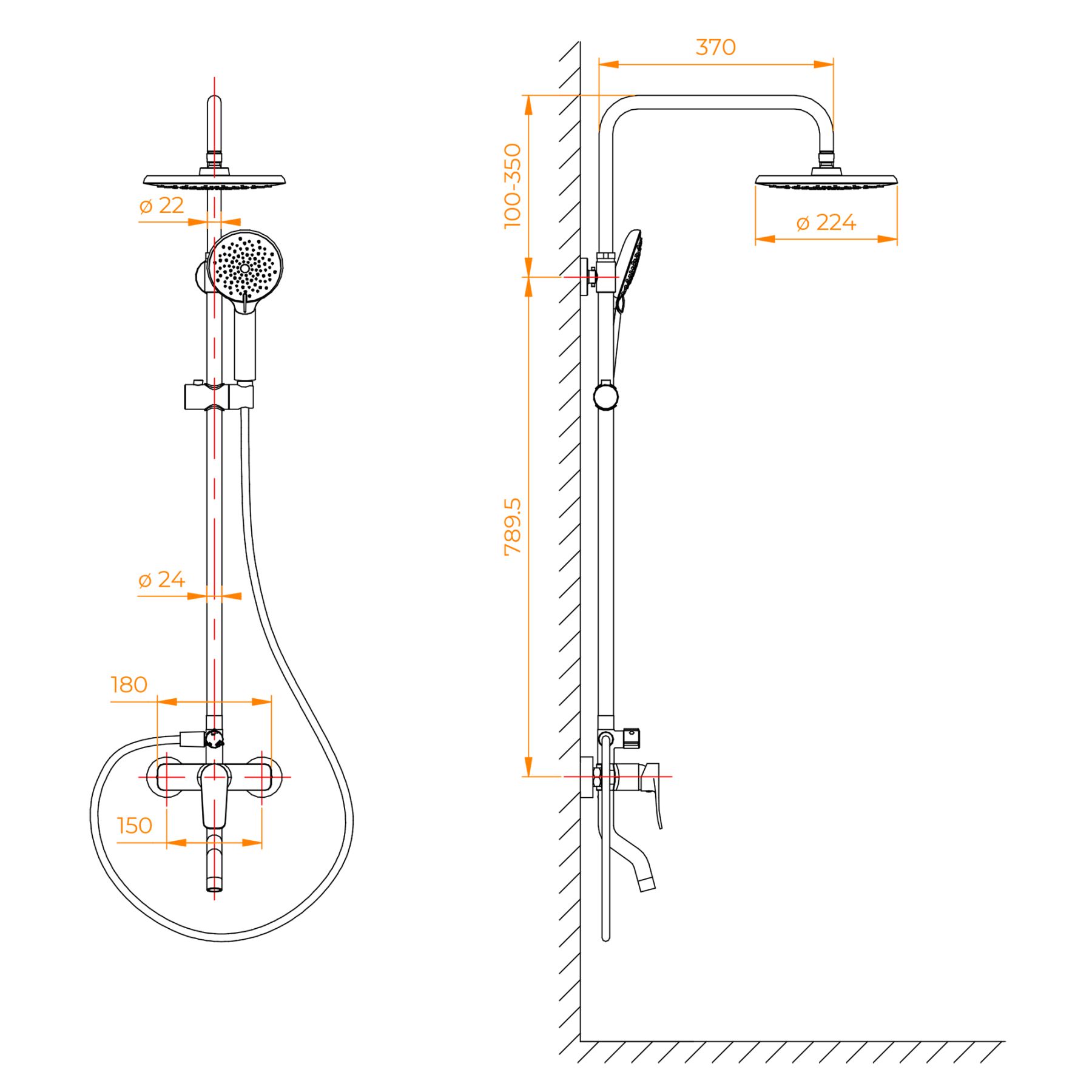 - Головной душ из высокопрочного ABS-пластика оснащён со шарнирным креплением, что позволяет выбрать необходимый угол направления воды;
