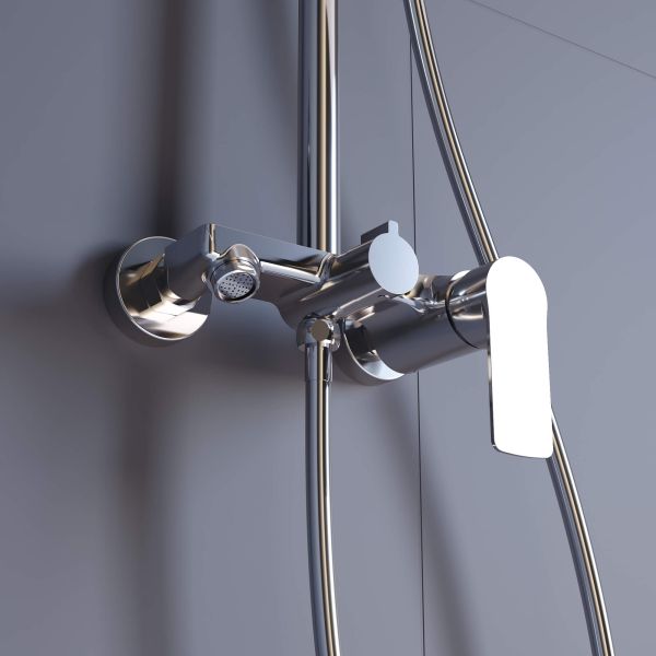 - Головной душ из высокопрочного ABS-пластика оснащён со шарнирным креплением, что позволяет выбрать необходимый угол направления воды;