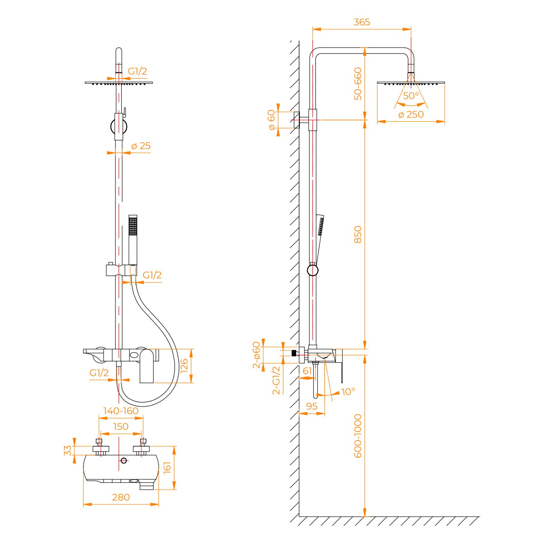 Стильный дизайн корпуса выполнен в отделке золото brush, модель идеально сочетается с современной сантехникой и безупречно впишется в ваше душевое пространство!